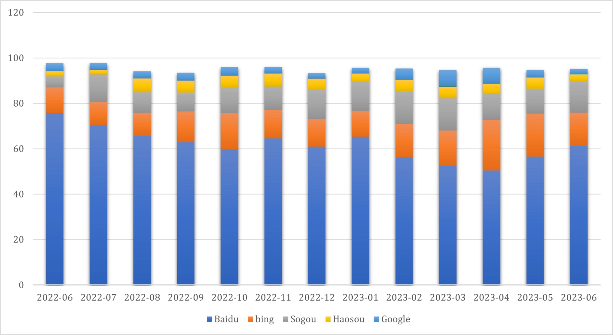 In this case Baidu being an earlier search engine developed still has opportunities to accumulate profit from China's search engine market. Baidu accounted for 74% of all searches in China in July 2022, 2023 statistics also defines Baidu as the leader among Chinese search engines.