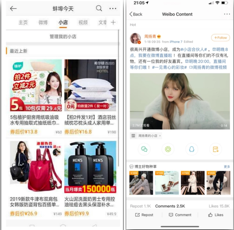 Weibo can also be used as an e-commerce tool. If you have a store on Taobao, you can directly give links on this Chinese social network. And since most users have already linked their Alipay account to their Weibo account, they can immediately go to the product they are interested in and make a purchase in one click. Like Douyin or Kuaishou Weibo allow brands to sell products through live streaming.