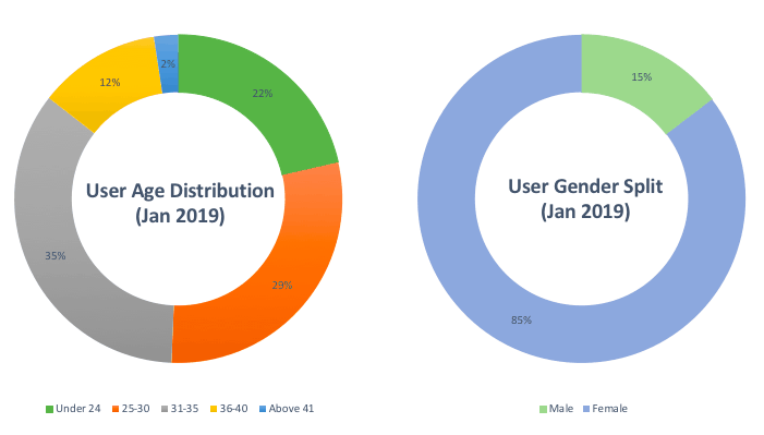 As already noted, the majority of users originate from the cities of the first and second tier (57% of users live in the cities of the first tier). This means that most users of the platform have a higher purchasing power than users of other platforms, whose target audience is mainly residents of cities of the third and fourth tiers.